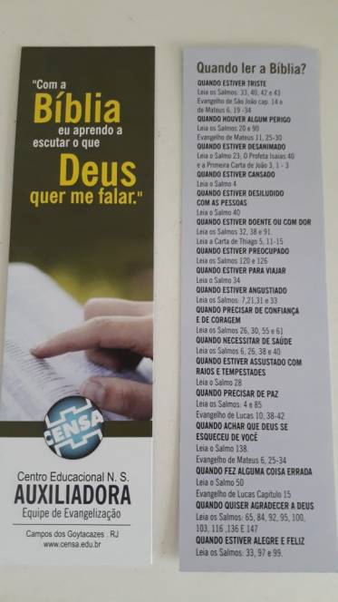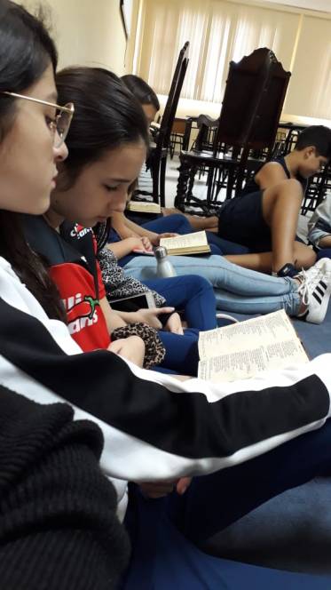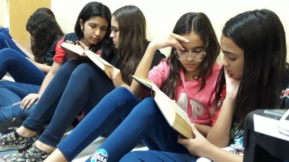 Setembro, mês da Bíblia, foi intensamente vivenciado pelos alunos do 6º e 7º anos do fundamental do CENSA. Durante as aulas de Cultura Religiosa, as turmas refletiram sobre textos bíblicos específicos para várias situações cotidianas: "Quando estiver triste", "Quando estiver doente", "Quando estiver cansado", "Quando quiser agradecer a Deus".