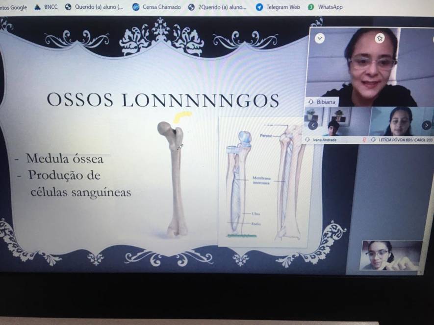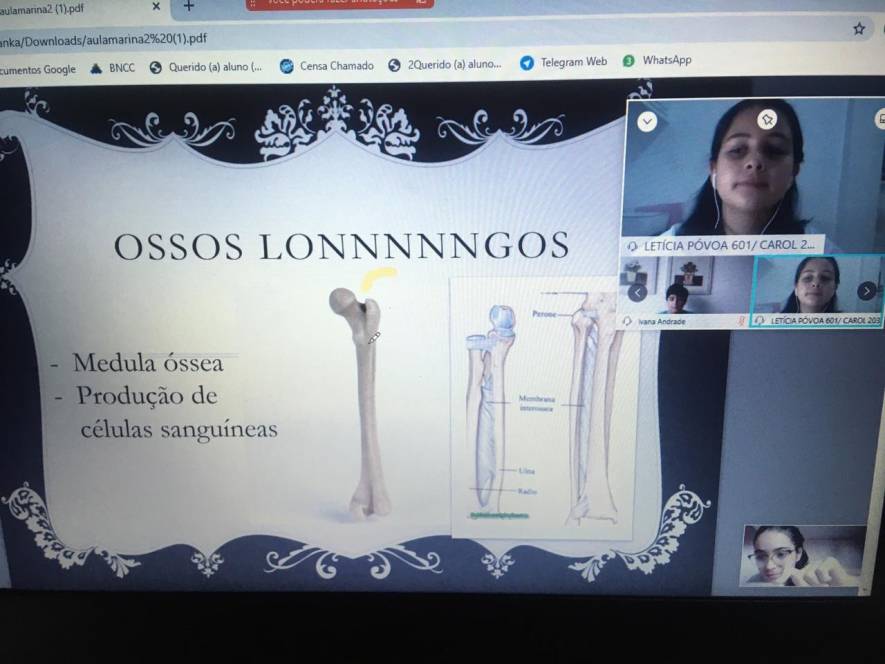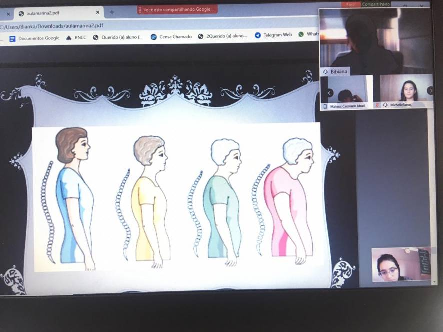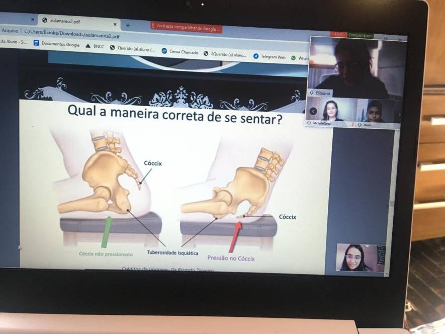 Contar com especialistas convidados para ilustrarem o tema das aulas sempre foi uma constante no CENSA. E essa característica foi conservada mesmo em tempo de aulas virtuais. Na sexta-feira, 5 de junho, o 6º ano fundamental conversou com Dr. Luiz Rodrigo, cirurgião buco maxilo facial, e Bibiana Castro, fisioterapeuta. Estudando o esqueleto humano, os alunos interagiram com os profissionais, aprendendo a localização dos ossos, nome das estruturas, importância das cartilagens... A garotada ainda foi incentivada a praticar exercícios de alongamento, para diminuir o impacto do uso constante do celular, e treinar a postura correta ao sentar.