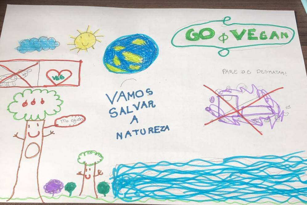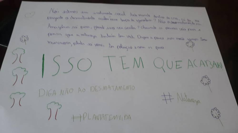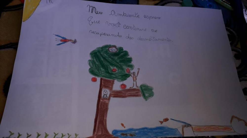 Após do debate, os alunos criaram cartões ressaltando a necessidade do cuidado com o meio ambiente e a importância de uma convivência responsável para o equilíbrio do ecossistema.