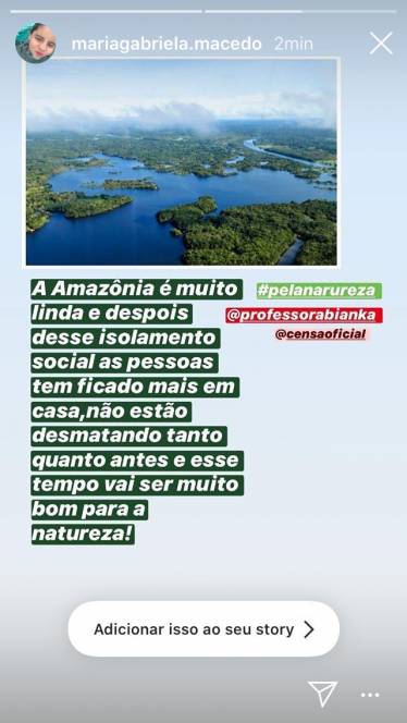 O 6º ano fundamental do CENSA dedicou o Dia do Meio Ambiente, 5 de junho, para uma reflexão sobre os impactos humanos sobre a natureza. A situação atual de isolamento social foi um dos pontos abordados. "Isso está refletindo no meio ambiente?", "A natureza está conseguindo respirar com a diminuição da ação humana?"