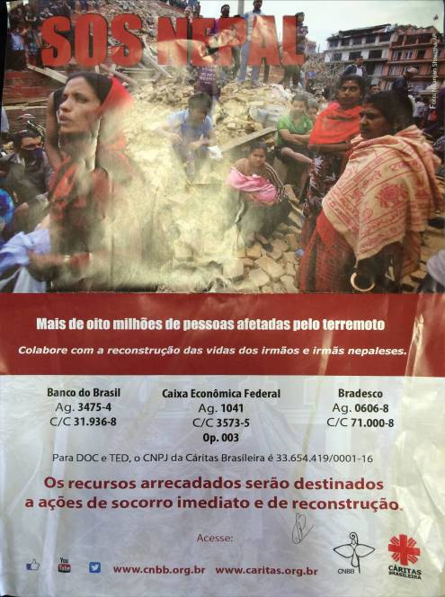 Colaborando com a reconstrução das vidas dos irmãos nepaleses afetados pelo terremoto, os alunos do 6º, 7º e 8º anos do Ensino Fundamental colaboraram com a aquisição de uma rifa e estão enviando a quantia para as Cáritas Brasileira.