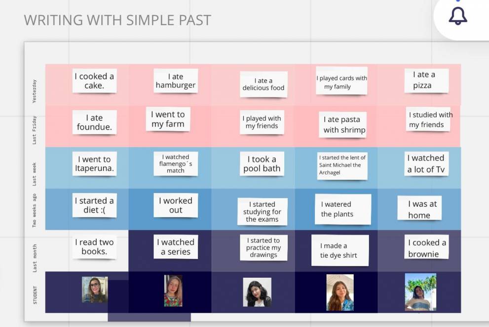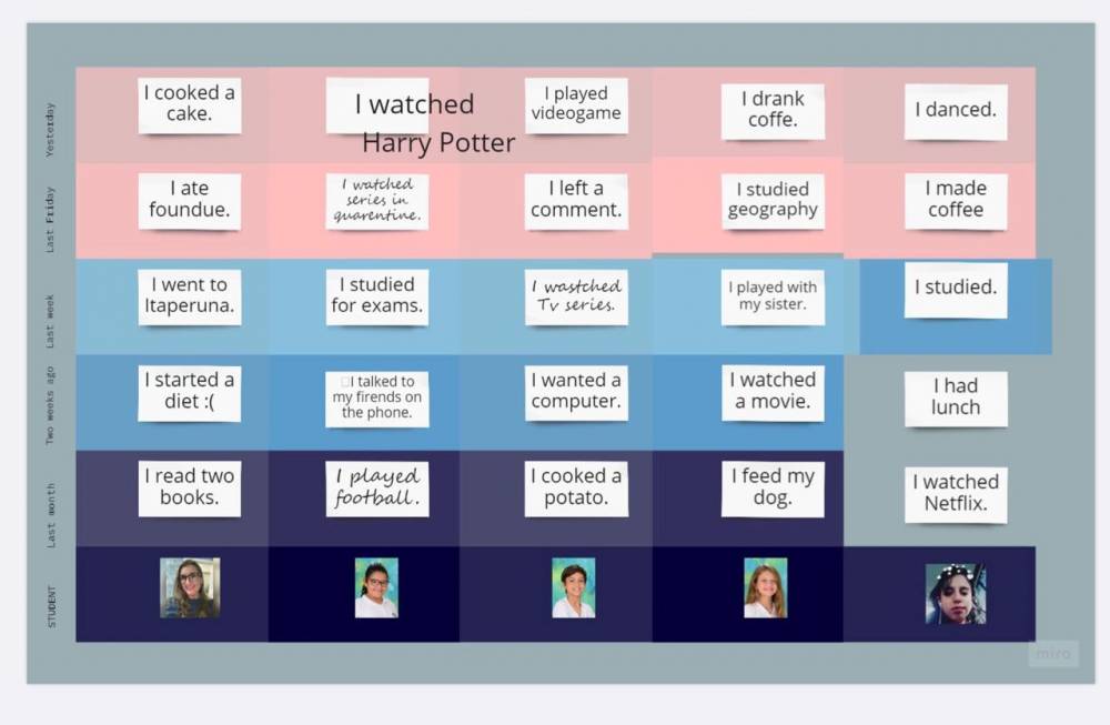 O 7º ano fundamental do CENSA utilizou o Miro na última semana de agosto, nas aulas de Inglês. Considerado uma incrível ferramenta online de planejamento visual e colaborativo, o Miro permitiu sistematizar os conteúdos estudados durante todo o trimestre. Foram criados Mapas Mentais sobre Simple Past e diagramas com post-its descrevendo as atividades realizadas, em pequenos textos.