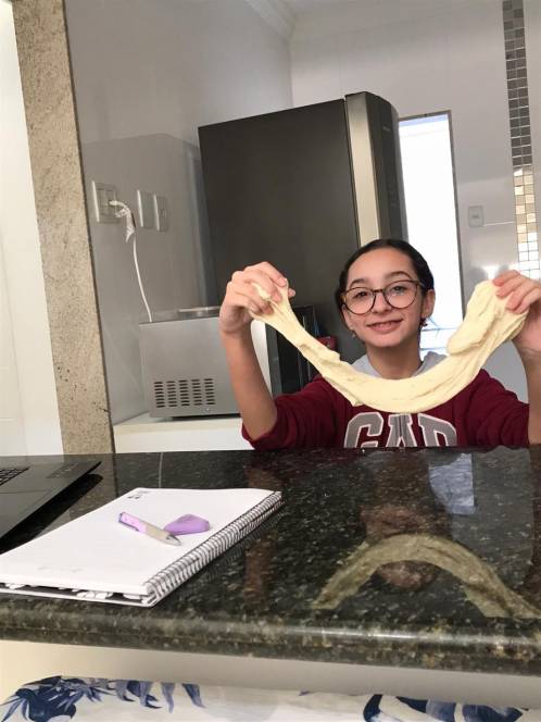 O tão temido e questionado tema "fração" foi encarado de forma divertida pelo 6º ano fundamental do CENSA. Na aula de Matemática de segunda-feira, 24 de agosto, os alunos participaram de uma atividade maker para entender o valor do número fracionário. O desafio foi confeccionar a própria massinha, seguindo a receita da professora Marcela Santos e, depois de pronta, dividi-la em várias partes. Assim, foi possível observar sua representação no todo e o raciocínio empregado na conversão das frações abordadas.