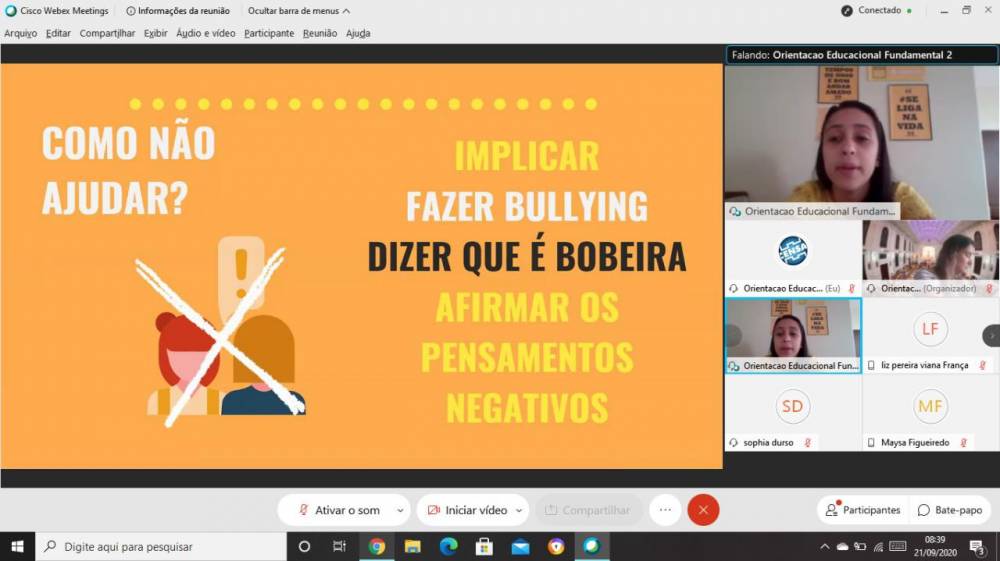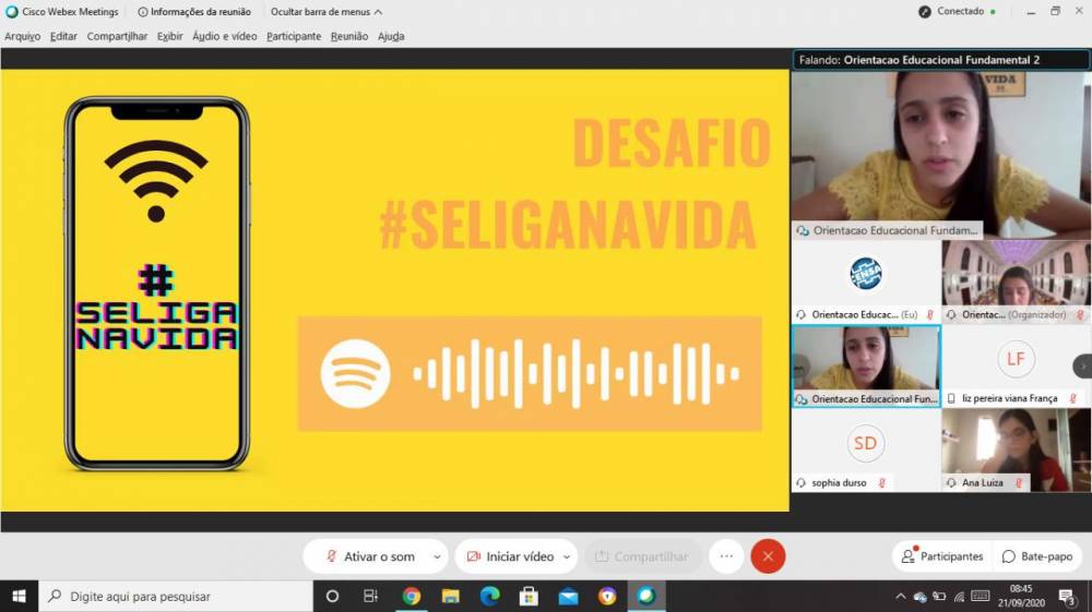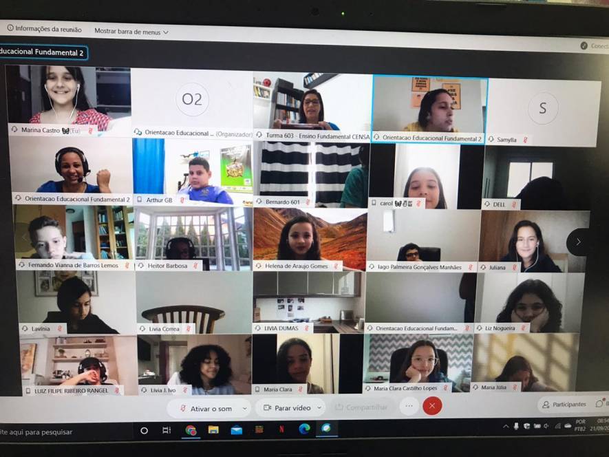 O CENSA sempre considerou habilidades sócio emocionais, projeto de vida e saúde mental temas essenciais a serem trabalhados com os alunos. O que constantemente já acontece, se tornou ainda mais necessário em tempos de isolamento social. Sendo assim, o Fundamental II (6º ao 8º ano) aproveitou o mês de setembro, período de campanha de prevenção ao suicídio, para desenvolver o projeto #seliganavida. Idealizado pela Orientadora Educacional Anna Luísa Ferreira, o trabalho, que também conta com a colaboração dos professores, teve início no dia 21 de setembro. Dividido em duas etapas, a primeira foi um franco bate papo,com os alunos expondo suas experiências e conflitos, abordando o tema de forma adequada à faixa etária. Foi, então, lançada a proposta de realizar diariamente uma atividade que os alertassem sobre o valor da própria vida, compartilhando e divulgando estratégias de cuidado com a saúde mental. O #seliganavida apresentou 3 desafios: no primeiro, os alunos participaram de um momento guiado de respiração e conscientização corporal; no segundo, foi pedido que realizassem uma atividade prazerosa que há tempo não faziam e, finalizando, deveriam procurar no mínimo três pessoas queridas e dissessem o quanto elas eram importantes em suas vidas, formando, assim, uma rede de contágio do bem.