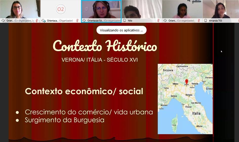 O 7º ano fundamental do CENSA viajou no tempo com a obra de William Shakespeare. A aula virtual de Inglês, que teve início com o questionamento sobre as escolhas irrefletidas feitas na juventude, levou à imortal obra "Romeu e Julieta". O objetivo foi apresentar estratégias que viabilizem o processo ensino-aprendizagem do texto shakespeariano de forma interdisciplinar e lúdica. "Escrita no fim do século XVI, a famosa peça funciona como o arquétipo perfeito para o amor juvenil, o que faz com que a história desperte, ainda hoje, o interesse no público adolescente", explicou a professora Ana Paula Castro.