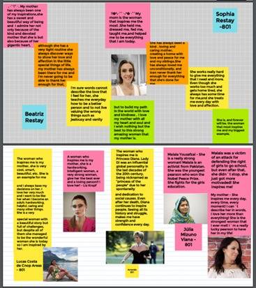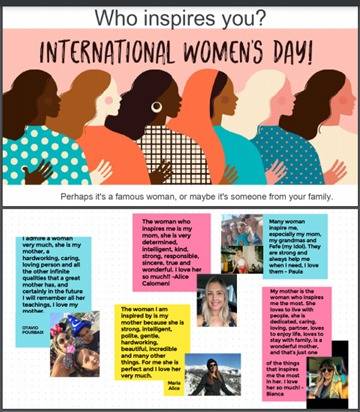 O International Women's Day não passou em branco pelo Programa Bilíngue do CENSA. No dia 8 de março, o 8º ano fundamental se concectou ao Jamboard e, utilizando uma escrita autoral, autônoma e criativa, registrou as qualidades presentes nas mulheres que mais admiram. "Mais do que uma homenagem, foi possível reforçar as estruturas gramaticais", explicou a professora Carla Nicolau.