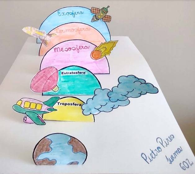 Estudando a atmosfera, o 6º ano fundamental do CENSA iniciou a aula de geografia de 15 de março com um vídeo sobre as diferentes camadas que estruturam a Terra. Após selecionarem as características de cada uma, os alunos partiram para uma atividade maker, montando as suas e destacando os principais componentes. "A prática permitiu um aprendizado profundo do tema, reconhecendo as interrelações entre os conceitos", explicou a professora Bianka Martins.
