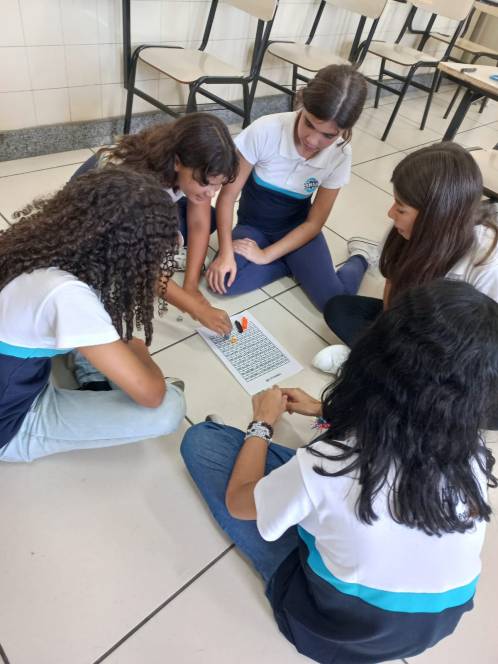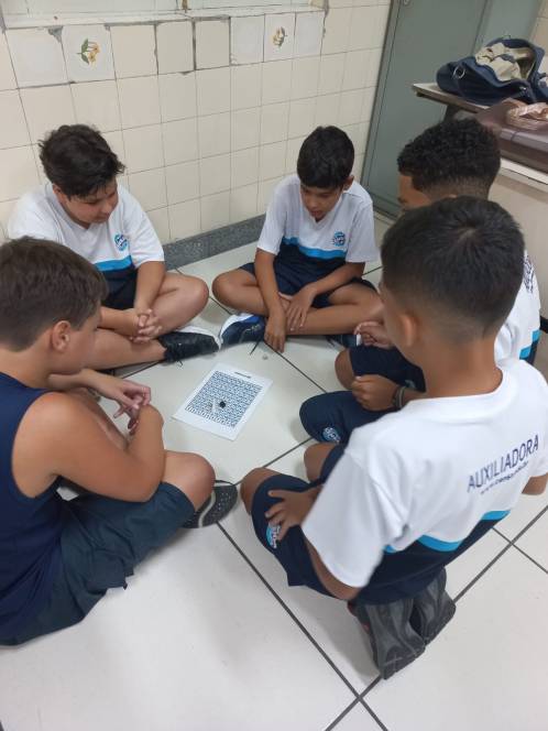 As aulas de matemática do 7º ano fundamental do CENSA já começaram movimentando a galera. "Aquecendo os neurônios", os alunos participaram da "Corrida ao 100", na segunda-feira, 27/02. O jogo propõe criar estratégias e resolver uma série de desafios matemáticos com o objetivo de avançar no tabuleiro, rumo ao 100. "A utilização de jogos como recurso didático permite uma dinâmica de ensino e aprendizagem colaborativa e desafiadora", afirmou a professora Fernanda Freitas.