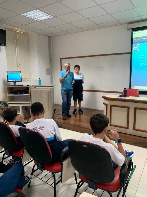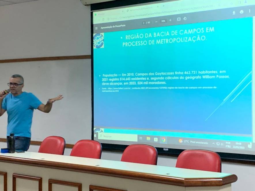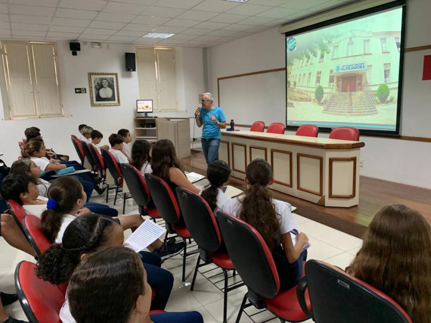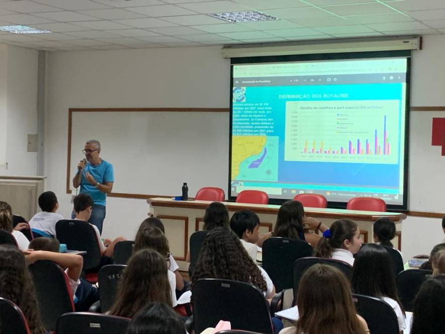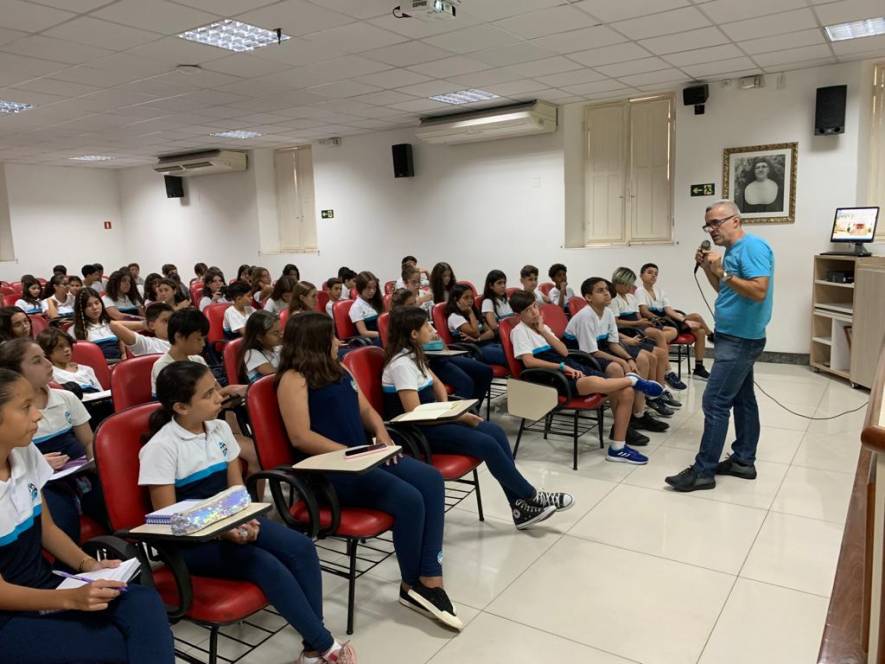 Desenvolvendo o projeto interdisciplinar "Campos dos Goytacazes: espaço, memória e poder", o 6º ano fundamental do CENSA recebeu o professor Carlito, para um bate papo, na quarta-feira, 22/03. Responsável pela disciplina de Geografia, para o Ensino Médio, o convidado falou sobre a exploração econômica da cana de açúcar na região, desde a fundação da cidade até os dias atuais, envolvendo os royalties. Enriquecidos com o aprendizado, os alunos levarão o conteúdo para a exposição que planejam para os dias 28, 29 e 30 de março, no café literário da escola. "Será uma forma de apresentar o projeto e homenagear o 188º aniversário da nossa cidade", disse Shayane Ferreira, coordenadora do segmento.