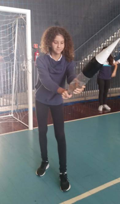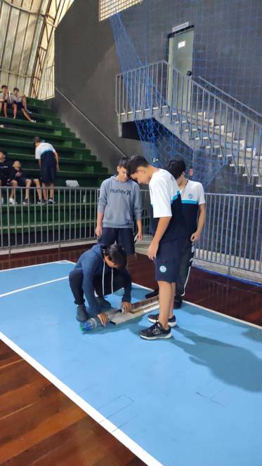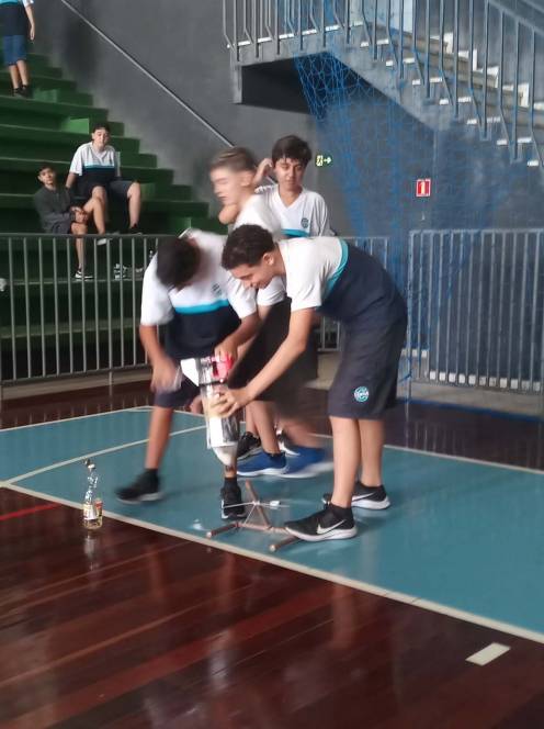 O 8º ano fundamental do CENSA participou de um projeto interdisciplinar, na terça-feira, 18/04. O desafio foi a construção e lançamento de um foguete e, para tal, foram exigidos o domínio de conteúdos de matemática, português e ciências. Após grande pesquisa sobre o tipo de material a ser utilizado e o sistema a ser adotado, os alunos experimentaram as teorias estudadas, atendendo às regras e procedimentos necessários à elaboração do protótipo. Interpretação de textos, apontamento de dados numéricos e unidades de medida, reações químicas e fenômenos biológicos foram abordados de forma prática, num processo de aprendizagem criativa e motivadora. "A utilização da experiência é uma metodologia muito interessante, porque instiga os alunos a buscarem e relacionarem o conteúdo aprendido com o experimento em construção", afirmou o professor Eduardo Rodrigues.