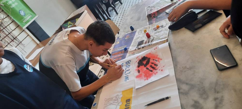 Anti bullying campaign é a nova proposta do 8º ano fundamental do CENSA. A campanha anti bullying surgiu nas aulas de Inglês e, após muita reflexão e debate, os alunos mobilizaram-se para disseminar a ideia pela escola. Munidos do material de divulgação (cartazes, vídeos e posts) produzidos no espaço maker, agora agendam visitas nas turmas do 6º e 7º anos para divulgar a mensagem. Quanto mais pessoas aderirem, melhor. A ordem é SAY NO TO BULLYING!