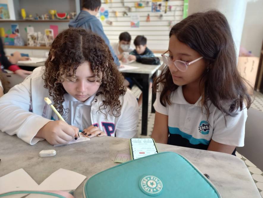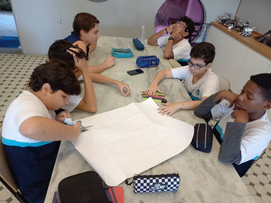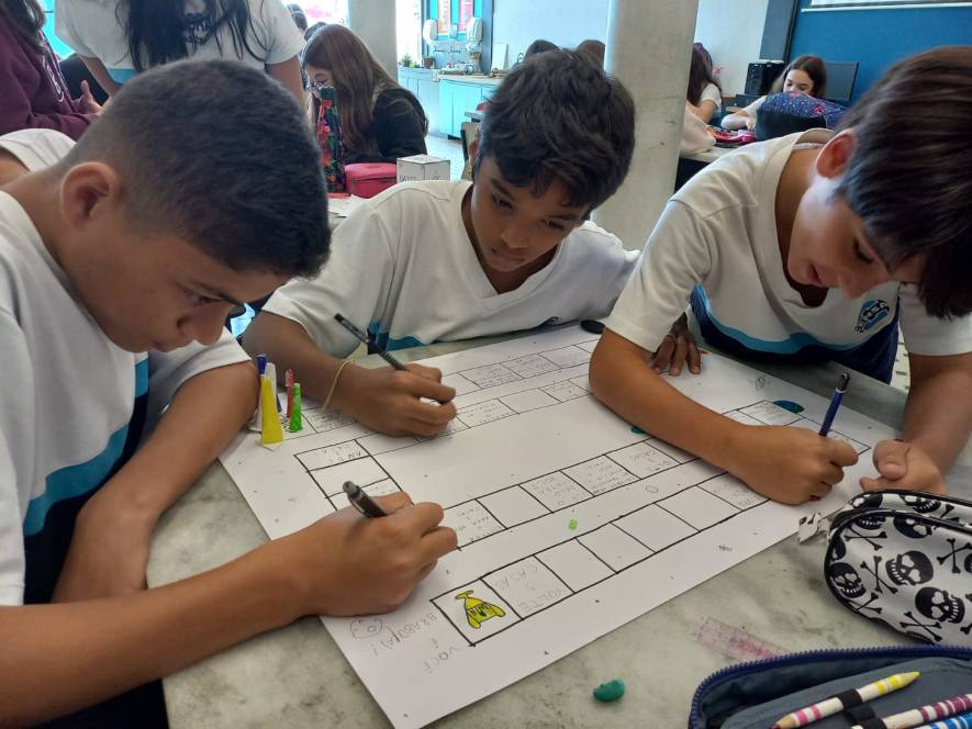 Conjugar verbos pode até parecer monótono ou difícil, mas não para o 7º ano fundamental do CENSA. Durante a aula de Língua Portuguesa da quinta-feira, 6/07, os alunos criaram diversos jogos para fixação da conjunção verbal nos modos indicativo, subjuntivo e imperativo. "A ludicidade transformou o processo em algo prazeroso e divertido", disse a professora Natália Lisboa.
