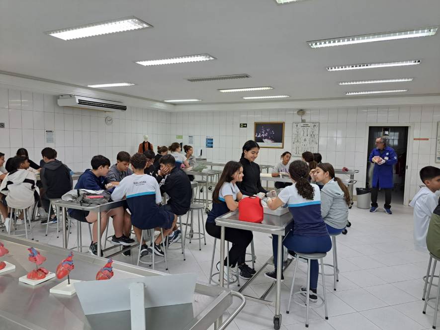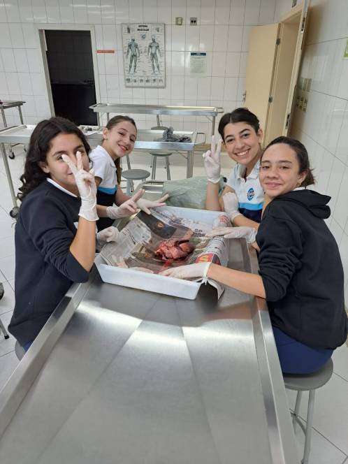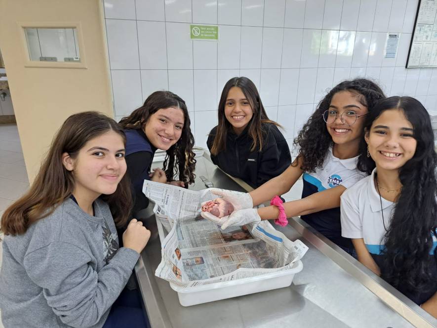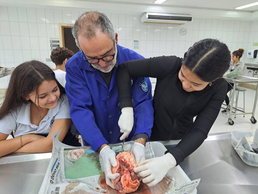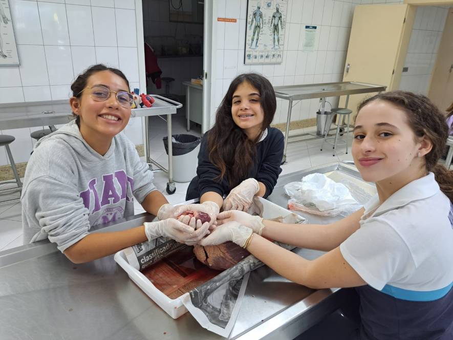 O 8º ano fundamental do CENSA participou de uma aula prática de anatomia do coração. A atividade aconteceu na quinta-feira, 6/07, no Laboratório de Anatomia da escola. Orientados pelo professor Eduardo Rodrigues e Ricardo Antônio, responsável pelo local, os alunos analisaram e reconheceram a anatomia do coração dos mamíferos, utilizando corações de boi e porco para comparar a estrutura anatômica com a do humano. Foi uma aula dinâmica, envolvente e de aprendizagem significativa.