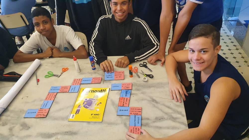O 8º ano fundamental do CENSA dedicou a última semana de agosto ao estudo das diferentes formas de organização da vida política numa comunidade. O conteúdo foi abordado pela disciplina de Filosofia Política que propôs a criação de jogos sobre o tema. Reunidos no espaço maker da escola, os alunos confeccionaram jogos de tabuleiro, da memória, verdadeiro ou falso, roleta e cartas, entre outros. "Além de imprimirem ludicidade, favoreceram o acompanhamento dos estudos com maior engajamento", disse a professora Fátima Coelho.