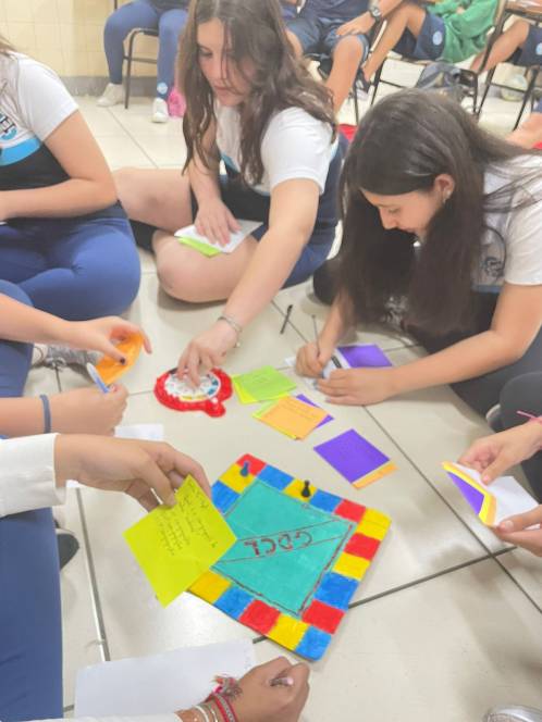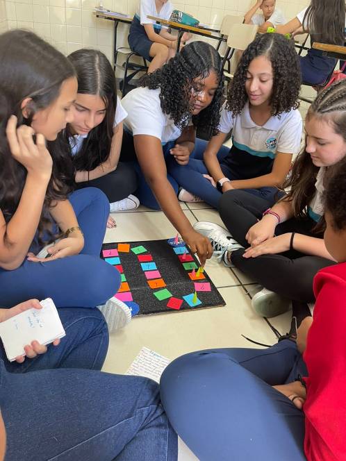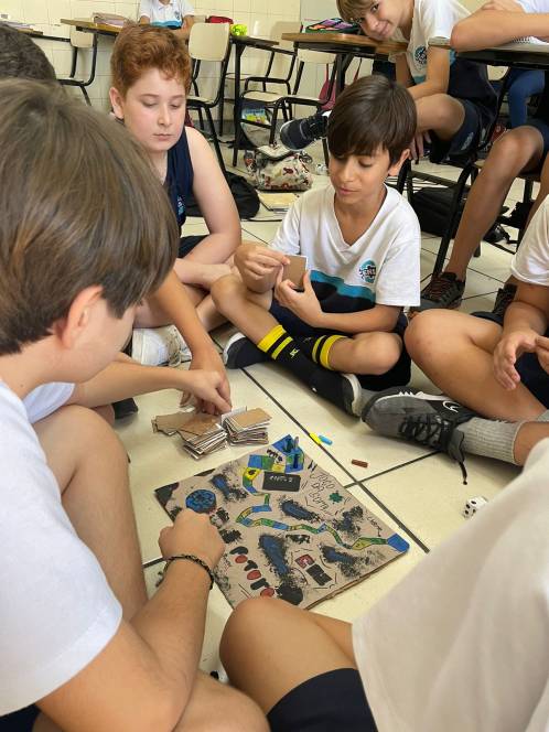 Acostumado à utilização de games para o estudo de conteúdos, o 6º ano fundamental do CENSA passou por uma experiência nova, na aula de Língua Portuguesa. O desafio da vez foi confeccionar os jogos, utilizando os tempos verbais no modo indicativo. No Espaço Maker, os alunos mostraram toda sua criatividade e o aprendizado sobre o tema, motivados pela prática. "A atividade estimulou a participação ativa da turma e favoreceu a fixação de saberes", disse a professora Juliana.