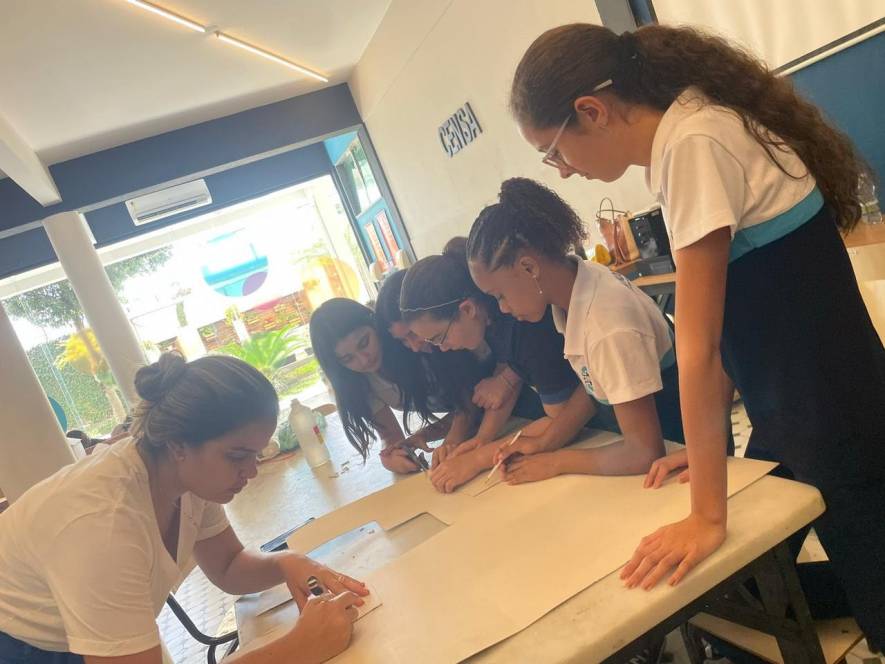 A turma 601, do Fundamental II do CENSA, deu início a mais uma etapa do projeto "Praça para todos", que desenvolve para a Semana Intercultural 2023. Na segunda-feira, 09/10, os alunos confeccionaram uma maquete da praça que será revitalizada. Localizada no bairro IPS, a Praça N. Sra. de Fátima foi escolhida após uma votação entre os alunos.
