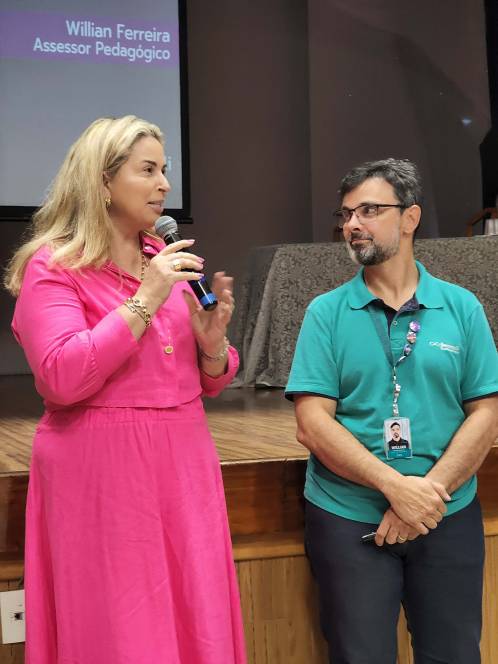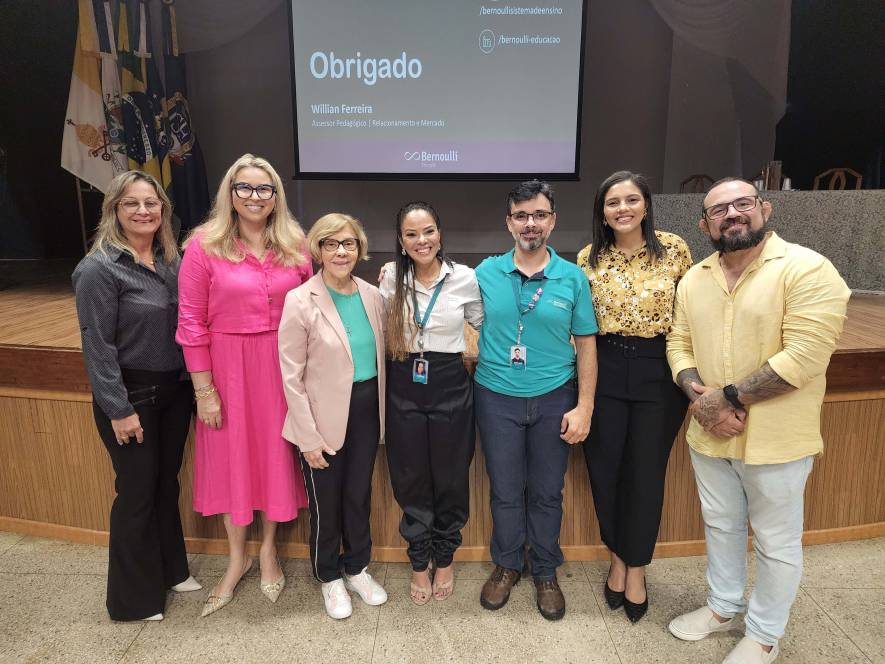 Os professores do Fundamental II, 6º ao 8º ano, do CENSA participaram da Conexão Bernoulli, na segunda-feira, 16 de outubro. Willian Ferreira e Sabrine Reis, assessores pedagógicos do sistema parceiro do Auxiliadora, apresentaram as mudanças previstas no material pedagógico para o próximo ano. Muitas novidades e melhorias à vista!