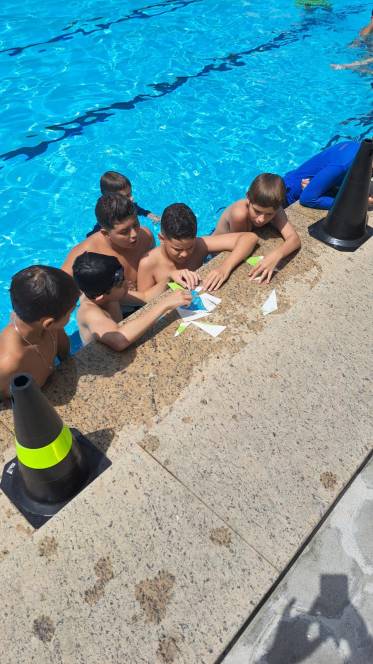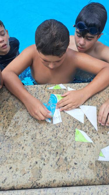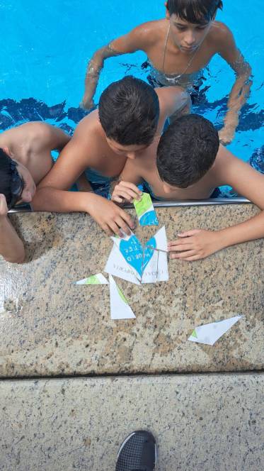 O 7º ano fundamental do CENSA inovou na celebração do Dia Mundial da Água. Unindo as disciplinas de ciências e educação física, os alunos participaram de uma atividade na piscina da escola. A proposta era encontrar as peças de um quebra-cabeças, estrategicamente "escondidas" na superfície da água, e montar a imagem que, ao tomar forma, apresentava valiosas lições sobre a importância do recurso e a necessidade de protegê-lo para as futuras gerações. Conscientização, aprendizagem, coletividade e muita diversão!