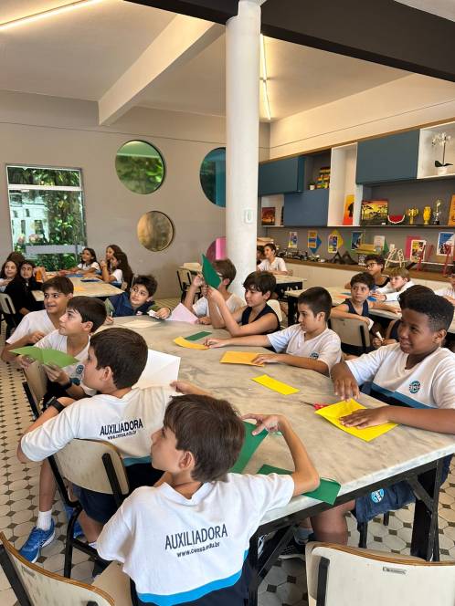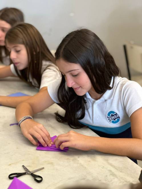 O 6º ano fundamental do CENSA participou de uma aula interdisciplinar, Redação e Português, na terça-feira, 16/04. Explorando o tipo textual instrução e os verbos no modo imperativo, a proposta foi construir origamis, seguindo as instruções verbais. Além de desenvolver habilidades de escrita, a atividade reforçou a atenção aos detalhes, necessários para seguir as etapas da criação.  Um aprendizado criativo e motivador que empolgou a turma. Sucesso!