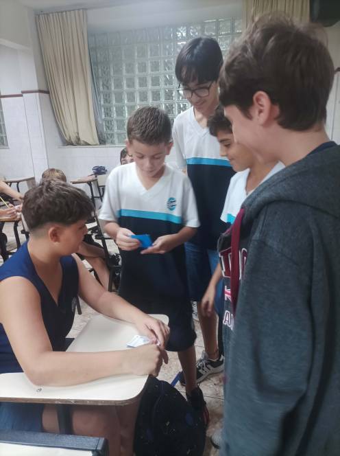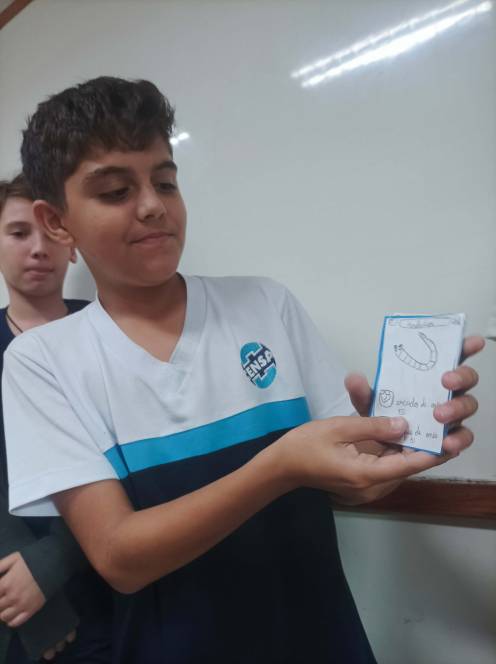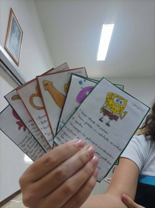 A disciplina de Ciências desafiou o 7º ano fundamental do CENSA a criar cards informativos sobre os filos dos animais invertebrados. O primeiro passo envolveu a pesquisa e organização das informações sobre os diferentes grupos taxonômicos. Cada card deveria apresentar de forma clara e concisa o filo escolhido, suas características, exemplos de espécies representativas e informações sobre seu habitat, comportamento e importância ecológica. A criatividade dos alunos foi tamanha que o resultado surpreendeu com uma grande variedade de jogos como Pokemon, Uno, jogo da memória e quem sou eu. A dinâmica aconteceu nos dias 22 e 23 de maio, sob a supervisão da professora Bianka Martins.