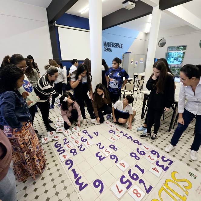 O fundamental II do CENSA encerrou as comemorações ao Dia da Matemática (6/5) recebendo o Laboratório Itinerante  do IFF - Instituto Federal Fluminense. Cheios de propostas práticas, interativas e lúdicas, os monitores visitantes envolveram os alunos do 6º ao 8º ano, em atividades  que estimularam o raciocínio lógico, a criatividade e a resolução de problemas, competências fundamentais para o desenvolvimento escolar e pessoal. " Foi uma oportunidade enriquecedora de crescimento intelectual, motivação e construção do pensamento crítico, reforçando a importância de conectar a teoria à prática", disse a coordenadora de Matemática, Fernanda Monteiro.
