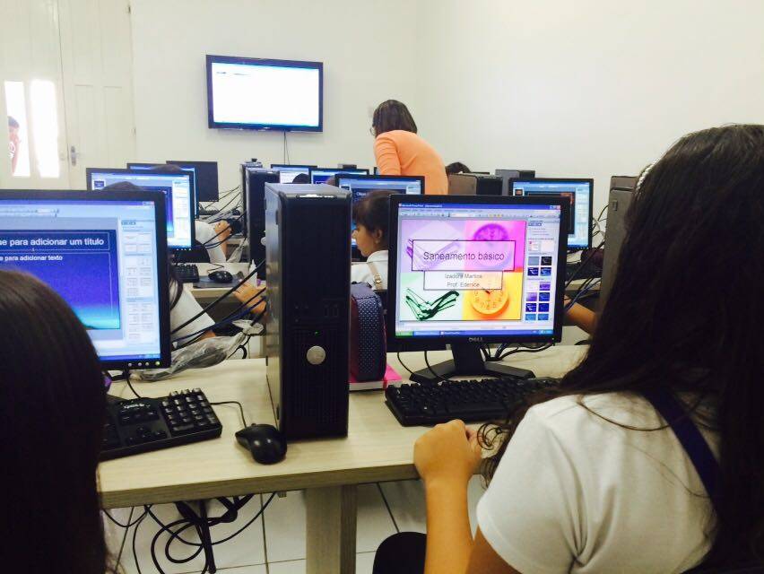 Os alunos do 6º e do 7º ano desenvolvem um projeto bastante significativo sobre a realidade do Saneamento Básico em nosso país e em nosso município. Inspirados pelo tema da Campanha da Fraternidade 2016, os alunos estão investigando a realidade e apresentarão o resultado destas pesquisas em forma de seminário para as outras turmas. No laboratório de Informática, os alunos aprendem a elaborar suas apresentações e se preparam para o seminário.