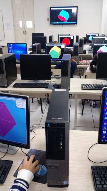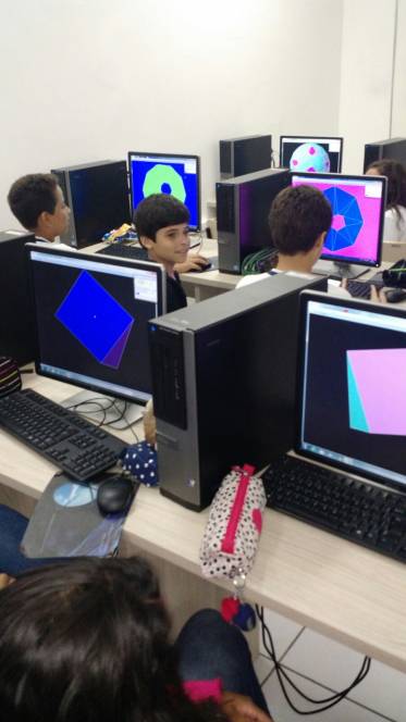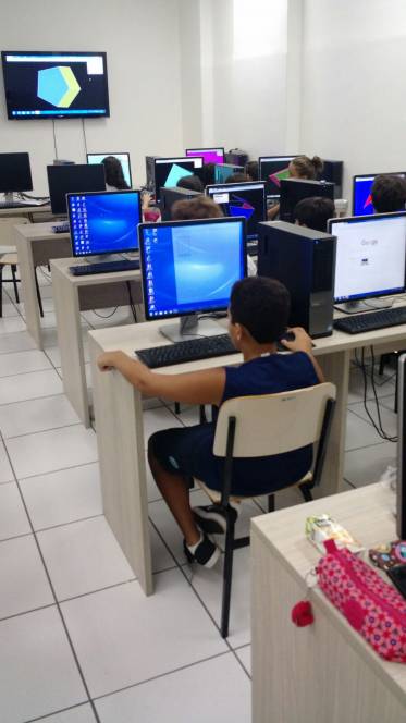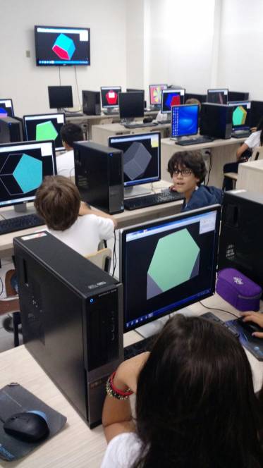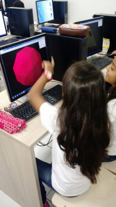 Aprender Matemática aqui no CENSA está cada vez mais divertido! Os alunos do 6º ano estudaram conceitos de Geometria no laboratório de Informática, utilizando o software "Poly", que possibilita identificar características semelhantes e diferentes entre os poliedros. A construção foi tão significativa e divertida que os alunos ficaram com gosto de "quero mais"!