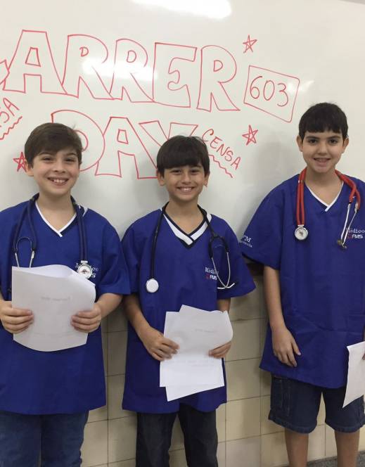 Os alunos do 6° ano foram protagonistas na aula de Inglês essa semana: apresentaram que carreira pretendem ter no futuro. Tudo em inglês, é claro!