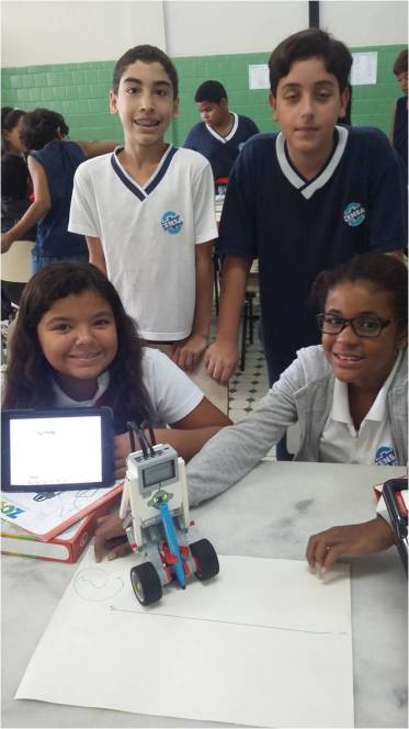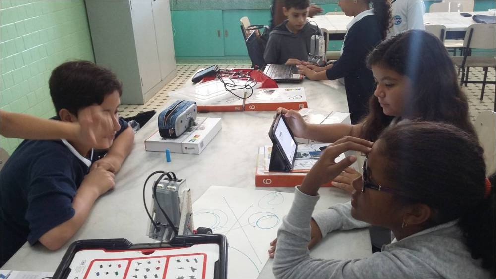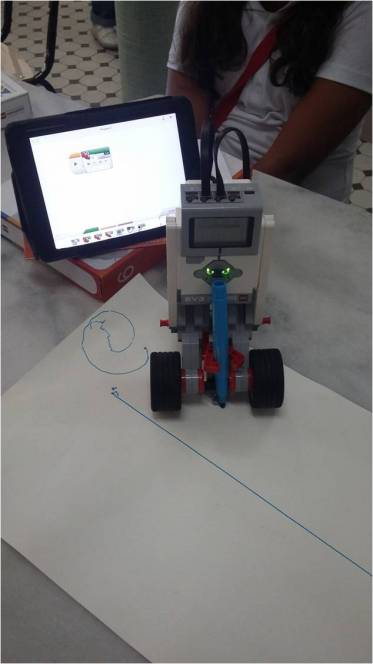 As aulas de Educação Tecnológica do 6° ano continuam a todo vapor! Os alunos criaram um robô desenhista utilizando dois motores. Os objetivos principais desta aula foram: compreender os comandos do ícone de programação mover volante (move steering) que possibilita o controle de dois motores simultaneamente; programar o funcionamento dos motores aplicando as funcionalidades do ícone de programação mover volante; programar o robô desenhista para que faça figuras geométricas.