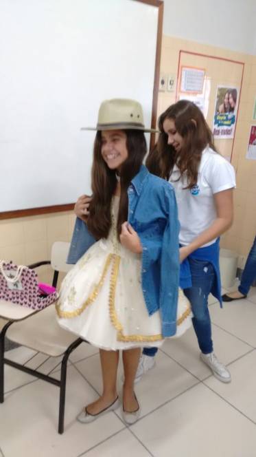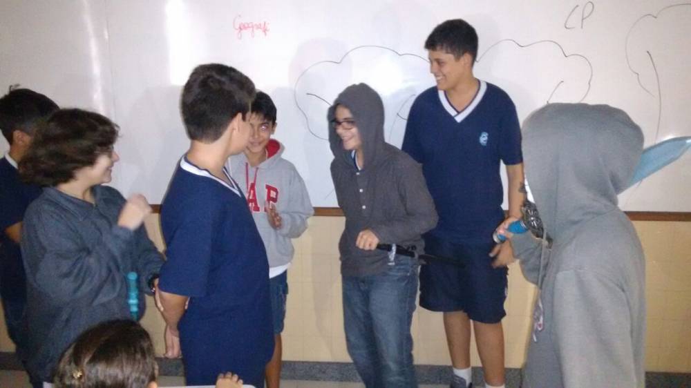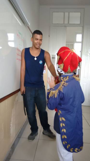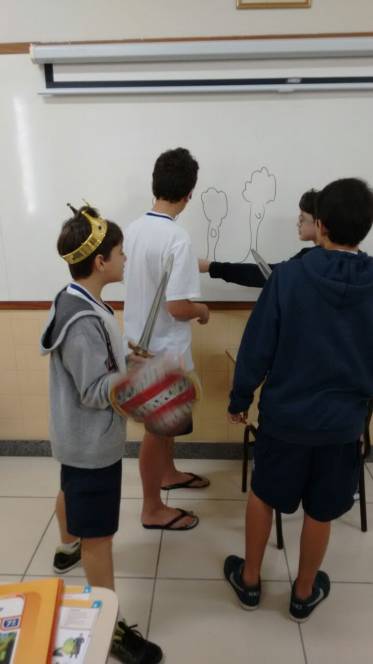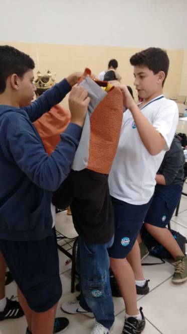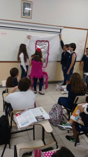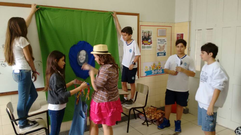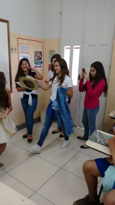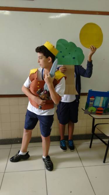 Os alunos do 7º ano têm curtido muito as aulas de Artes do professor Luis Carlos Soares. Eles realizaram um estudo sobre o grupo Farsa, cumprindo o estudo sobre teatro e moda. Além disso, fizeram releituras de contos como "A princesa e o Sapo", adaptando à realidade atual. A diversão e o aprendizado estão de mãos dadas nestas aulas.