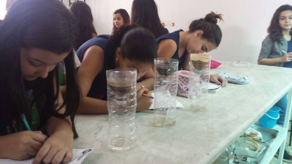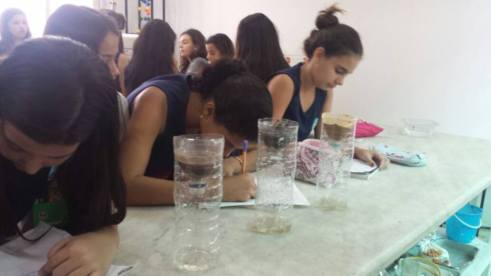 Os alunos do 6º ano, junto com a professora Ligia Palácio, foram ao laboratório para iniciarem os estudos sobre a erosão e os tipos de solo. Ao manipularem os elementos que compõem os solos, puderam perceber a permeabilidade de cada um deles e compreenderam com mais facilidade alguns acontecimentos naturais, como o deslizamento de terras e a interferência humana nestes acontecimentos. Foi uma aula bastante produtiva e significativa!