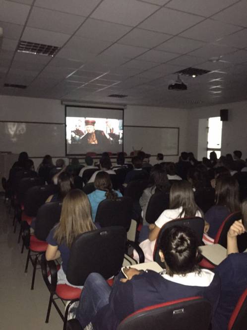 Para fechar com chave de ouro a leitura em inglês do livro "Romeo & Juliet", o 7° ano assistiu versão cinematográfica de 2013 do clássico William Shakespeare. Os alunos Nicole da turma 701 e Luiz Henrique da turma 703 leram o contexto literário da obra em Inglês e português, junto com a professora de Ana Paula Castro. A professora Edenice Rinaldi nos presenteou com o contexto histórico. Foi emocionante!