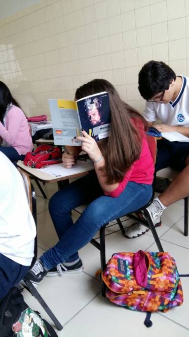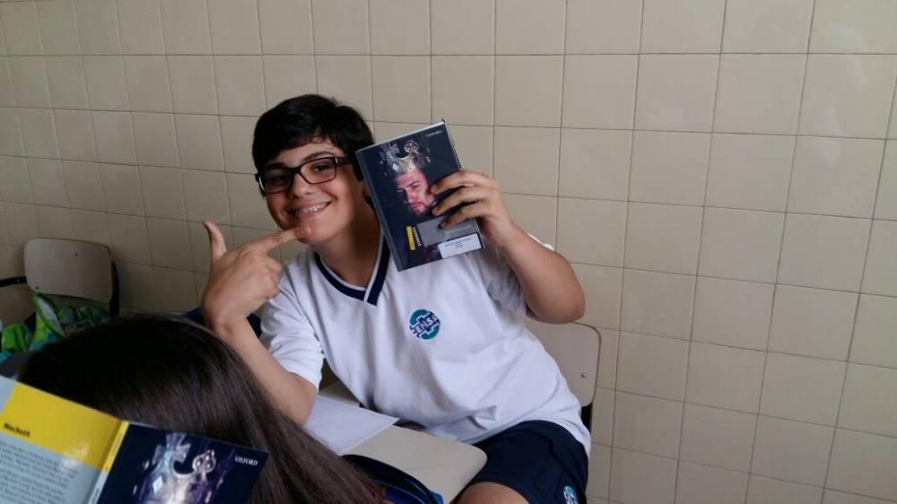 Os alunos do 8° ano, junto com a professora Carla Nicolau, estão ampliando o vocabulário e a cultura inglesa através da leitura do livro de literatura Macbeth, do renomadíssimo Shakespeare, ao longo do terceiro bimestre. Aproveitaram para fazer uma homenagem a este autor ímpar que este ano completa 400 anos de morte.