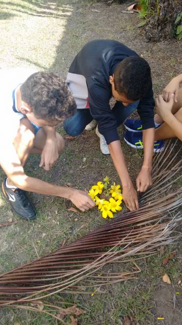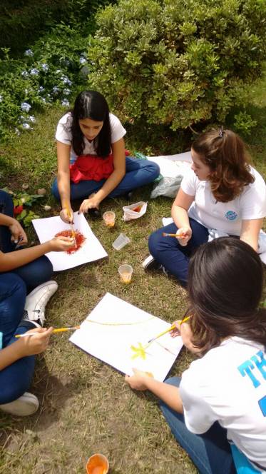 Foi um momento de interação entre a natureza e a expressão artística dos alunos. Os pigmentos naturais terrosos foram aplicados às criações e composições dos nossos artistas.