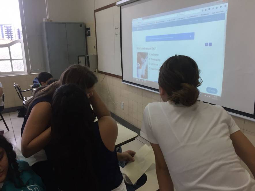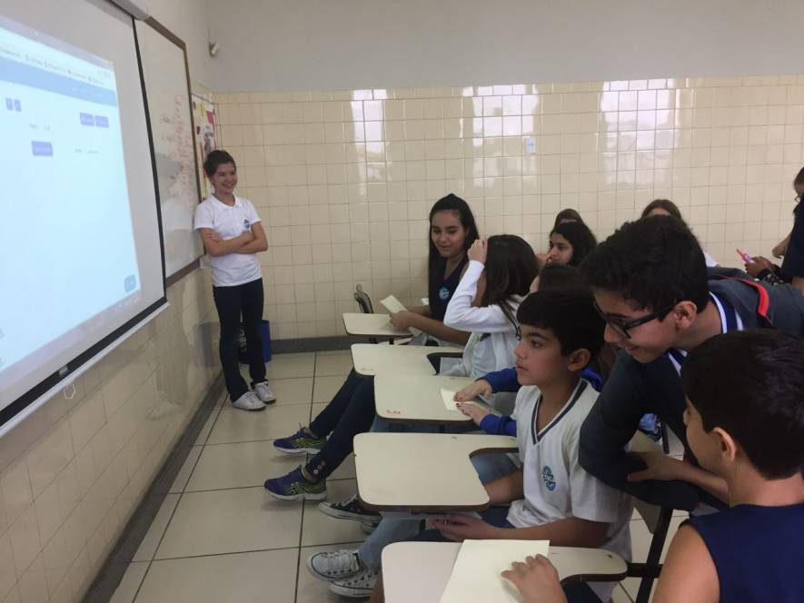 Blended Learning no 6º ano! Os alunos fizeram um teste de inglês diferente, na manhã de 14 de novembro. Usando o aplicativo Plickers, organizaram-se em grupos e responderam as perguntas por meio dos Cards fornecidos pelo aplicativo e, com o celular, a professora registrou as respostas. Foi uma aula diferente, produtiva e animada!