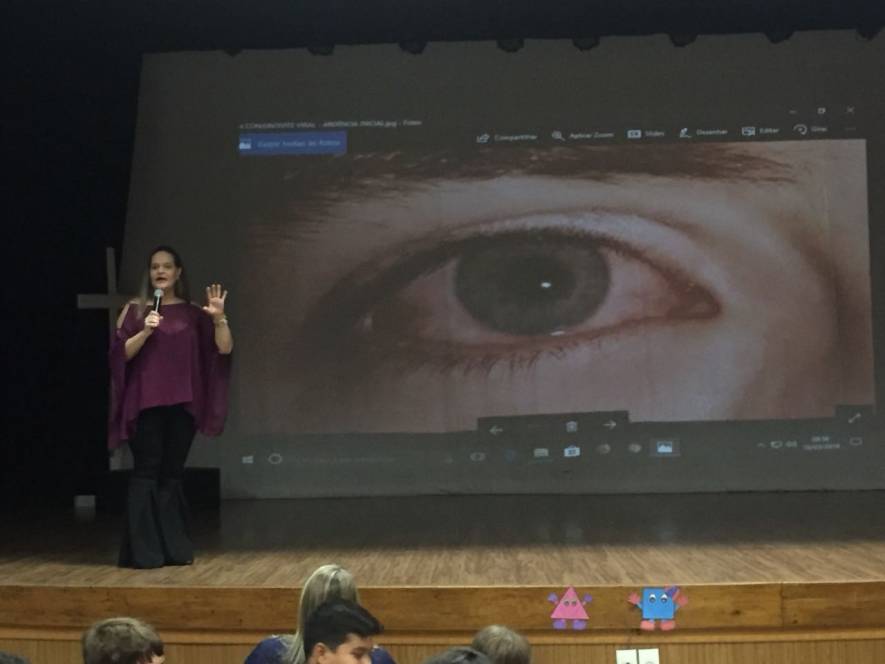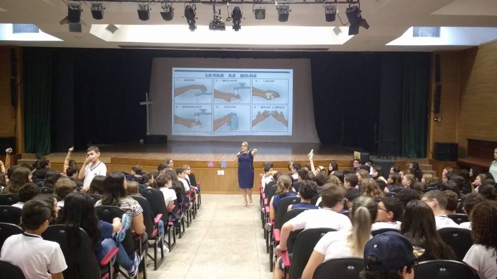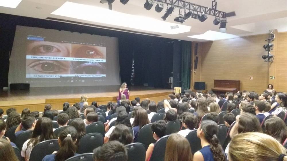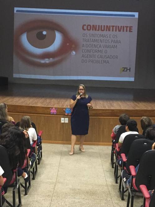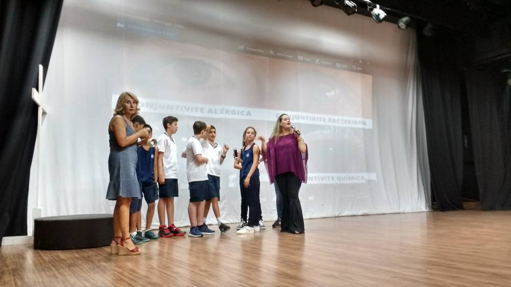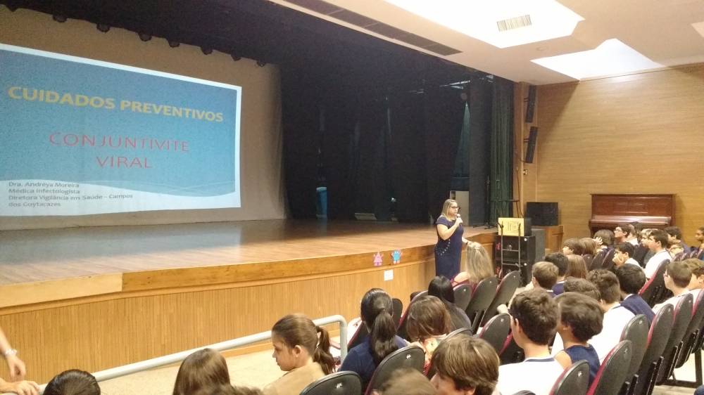 O surto de conjuntivite no município gerou um convite às doutoras Helen do Espírito Santo, oftalmologista, e Andrea Moreira, infectologista, para um encontro com o Ensino Fundamental II do Auxiliadora. Os alunos do 6º ao 8º ano receberam as especialistas para uma palestra na sexta-feira, 16 de março, com o principal objetivo de conhecer as formas de evitar o contágio da doença.