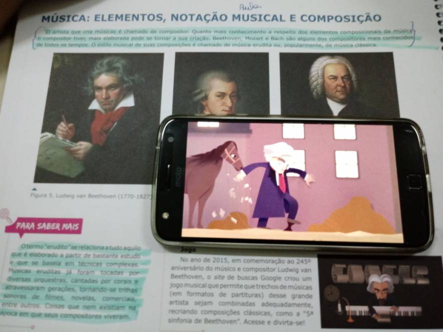 Os grandes mestres da música erudita constantemente são visitados pelo 7º ano do CENSA, em suas aulas de artes. Na segunda-feira, 9 de abril, os alunos recriaram melodias, elaborando novas composições através de games.