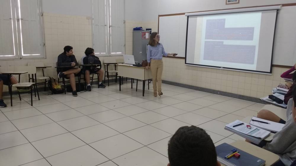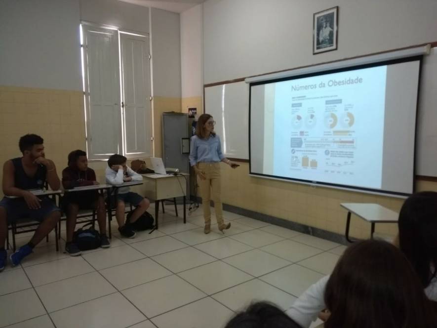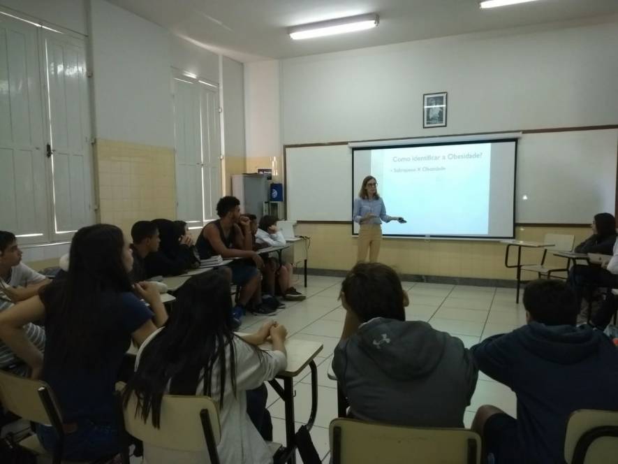 O 8º ano do Ensino Fundamental do CENSA recebeu a endocrinologista Patrícia Peixoto para uma palestra, na manhã de 23 de maio. Falando sobre os fatores que levam à obesidade e suas consequências, a convidada levou os alunos a refletirem sobre importância de hábitos saudáveis na alimentação, exercício físico e qualidade do sono.