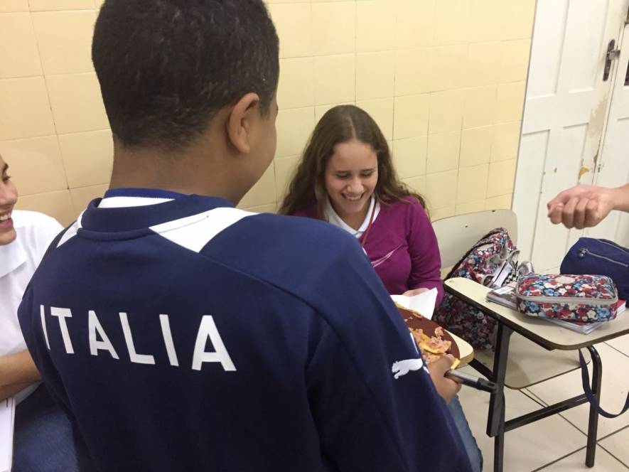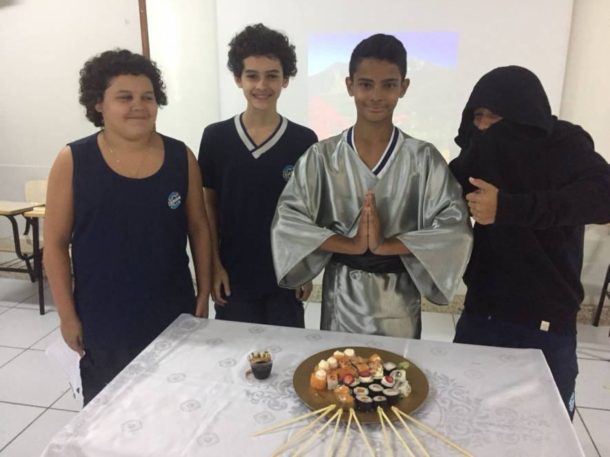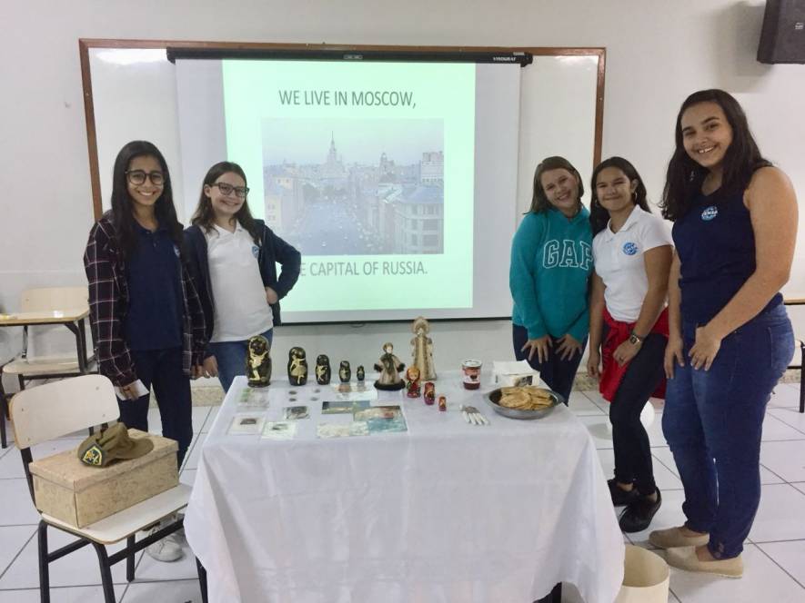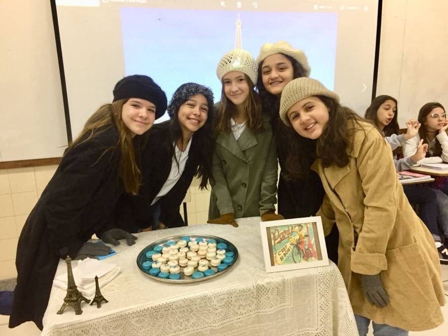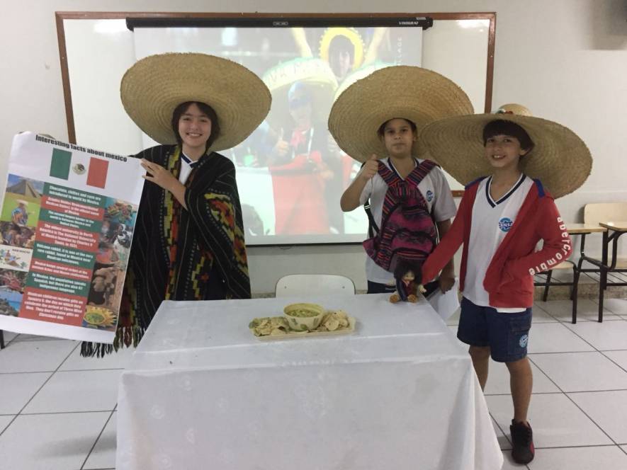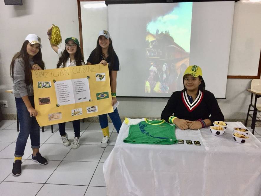 O objetivo da aula de inglês do dia 11 de junho era conhecer melhor os países e sua culinária e o 7º ano do Ensino Fundamental literalmente colocou a mão na massa! Após pesquisas e descobertas sobre os 18 países estudados, os alunos prepararam uma apresentação deliciosa, com direito a degustação de pratos típicos. E para mostrar que realmente "visitaram" cada país, fizeram criativas fotomontagens, em seus celulares. Segundo Ana Paula Castro, professora da disciplina, "foi como viajar o mundo sem sair da sala de aula!"