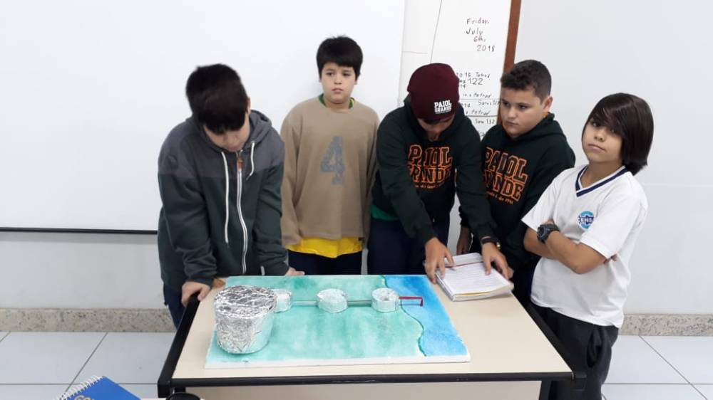 Concretizando o conteúdo teórico estudado, o 6º ano do Fundamental do CENSA montou uma Estação de Tratamento de Água, na aula de Ciências, de 6 de julho.