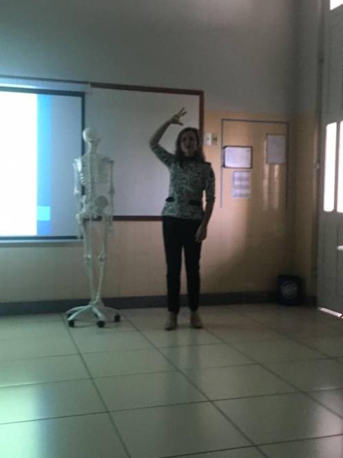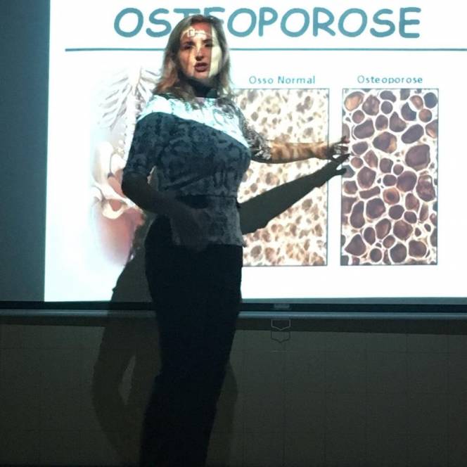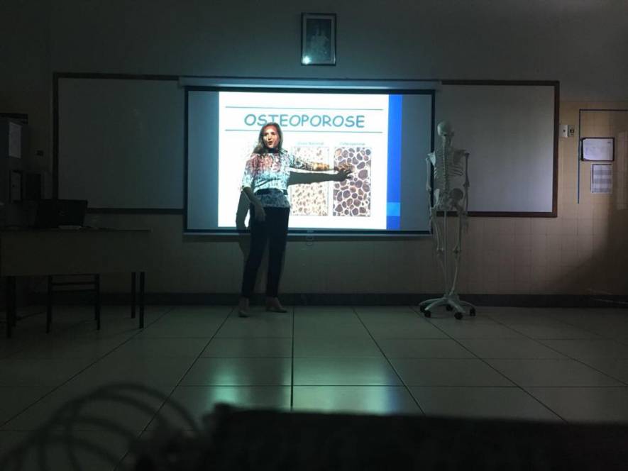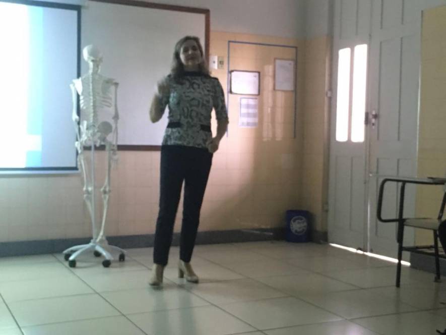 O 8º ano do Fundamental do CENSA recebeu a fisioterapeuta Patrícia Baracat, na sexta-feira, 21 de setembro. O encontro fez parte do projeto "EnvelheSer" que os alunos desenvolvem e pretendem apresentar na Feira Intercultural do CENSA, que acontecerá em outubro. Durante a visita, Patrícia falou sobre o impacto na mobilidade na execução de tarefas, identificando os primeiros sinais visíveis do envelhecimento na postura e na maneira de andar.