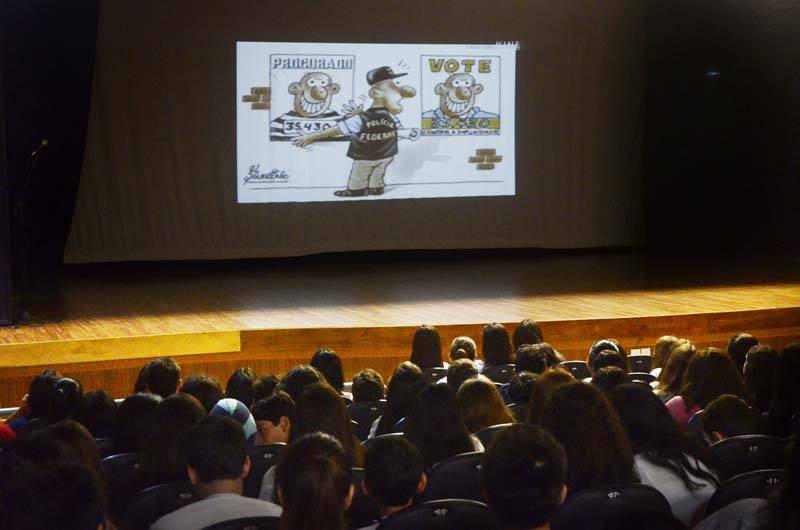 A proximidade das eleições está empolgando também os alunos. Cientes da importância do voto consciente,o Ensino Fundamental II do CENSA, 6º ao 8º ano, prepararam a acolhida de 3 de outubro, abordando esse tema. Reunidos no teatro da escola, os alunos apresentaram filmes e paródias, produzidos pelos próprios, fazendo uma reflexão sobre o papel do cidadão nesse momento tão importante e decisivo para o país.