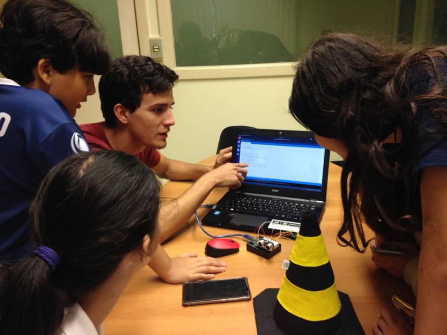 Partindo para a produção do protótipo da bengala inteligente, resultado do projeto "Acessibilidade" que desenvolvem, o 6º ano do Fundamental do CENSA contou com a ajuda de Harley Câmara, estudante de engenharia elétrica do IFF, na manhã de 17 de outubro. A montagem envolveu a aplicação de vários conceitos de programação e mecanismo de funcionamento de sensores ultrassônicos. Ao final, muita vibração com a conclusão e funcionamento do protótipo. O trabalho será exposto na Semana Intercultural do CENSA. Vale a pena conferir!