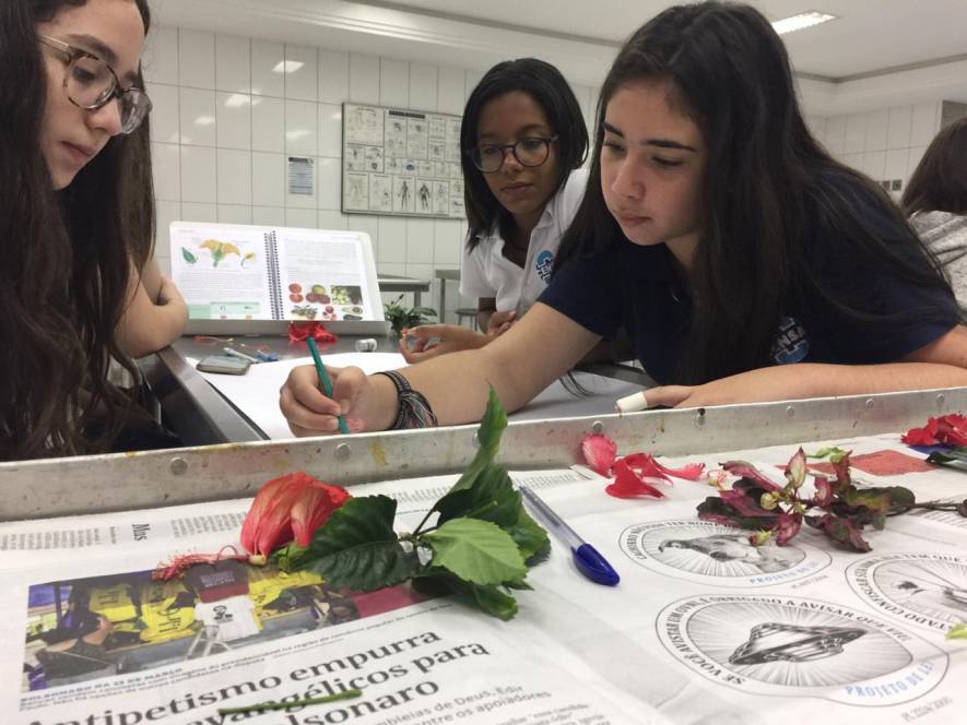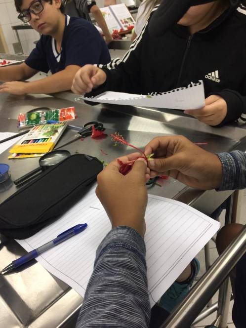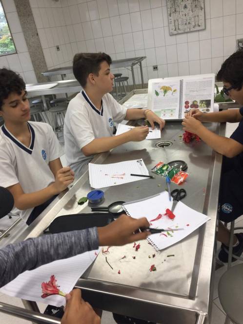 Estudando a anatomia e a reprodução das flores, o 7º ano Fundamental do CENSA teve uma aula prática no Laboratório de Ciências, na manhã de 9 de novembro. Num ambiente adequado para o aprendizado, os alunos conheceram as características das flores, identificaram as partes responsáveis pela reprodução e reconheceram a importância das cores e do perfume como recursos para atrair agentes polinizadores.