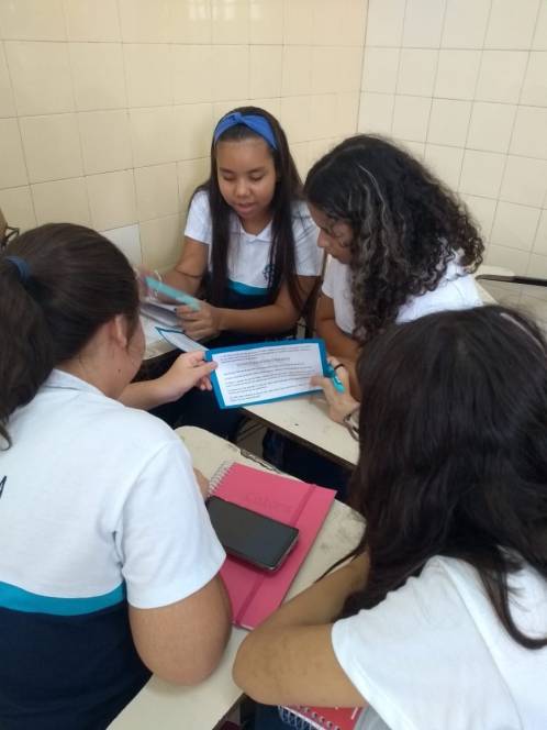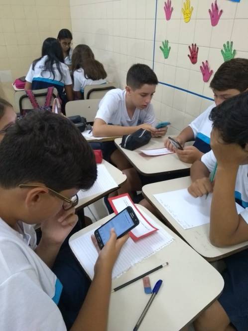 As aulas de matemática do 7º ano, ministradas pela professora Fernanda Freitas, têm deixado os alunos muito envolvidos pela disciplina . Logo no início das aulas, usando a dinâmica Word Splash, eles tiveram que refletir " O que já sei" e " O que ainda não sei", retomando, assim, seus conhecimentos prévios e ficando aguçados diante das novidades matemáticas que estão por vir. Em um outro momento, a prática da Rotação por Estações foi utilizada com resolução de questões matemáticas sobre um novo campo numérico, os números inteiros, utilizando calculadora, pesquisa em sites no smartphone e quebrando a cabeça nos desafios propostos.