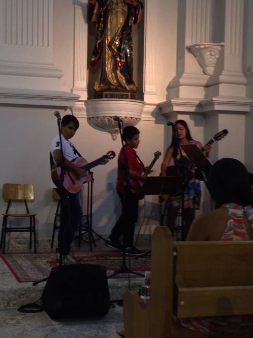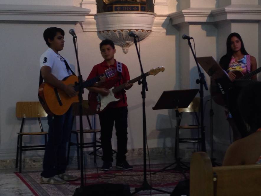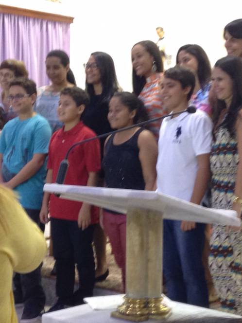 Alunos do 6º ao 8º ano participaram de modo especial da missa de reinauguração da Capela do CENSA. A banda, formada por vários alunos deste segmento, empolgou com os cantos ao longo da celebração.
