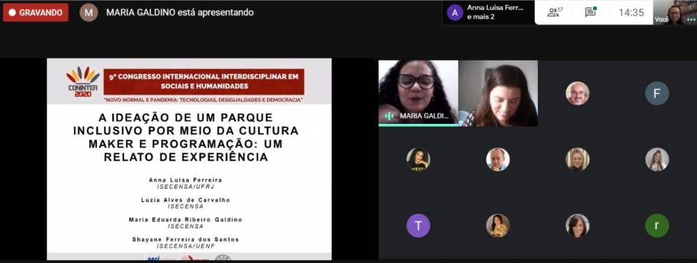 O CENSA participou do 9º CONINTER - Congresso Internacional Interdisciplinar em Sociais e Humanidades, entre os dias 17 e 19 de novembro. Promovido pela UENF - Universidade Estadual do Norte Fluminense, o evento este ano aconteceu virtualmente e se propôs a discutir questões relativas à pandemia do Covid-19 e seus desafios para as áreas de Humanas e Ciências Sociais Aplicadas. O "Auxiliadora" foi representado pelas professoras Ângela Berto, com o trabalho "O uso do Portfólio digital Trello no desenvolvimento da competência geral - projeto de vida com alunos do 1° ano do Ensino Médio", Bianka Martins , que apresentou "Ciências e Tecnologia: o estudo da célula pelo viés do movimento maker com o uso do padlet" e Maria Eduarda Galdino, que abordou "A Ideação de um parque inclusivo por meio da cultura maker e programação: um relato de experiência", elaborado em parceria com Edenice Rinaldi e Fernanda Gonçalves. Os trabalhos foram apresentados em comunicações orais, em grupos sobre Informação, Educação e Tecnologias.