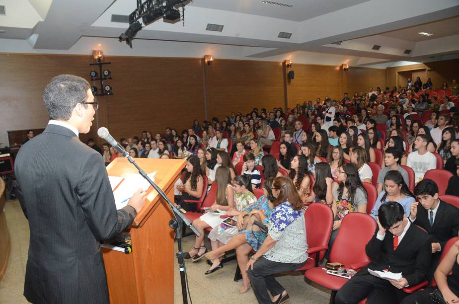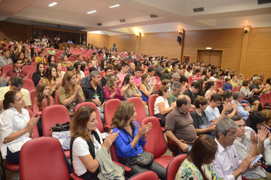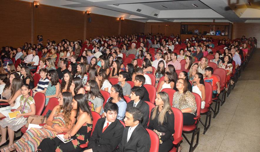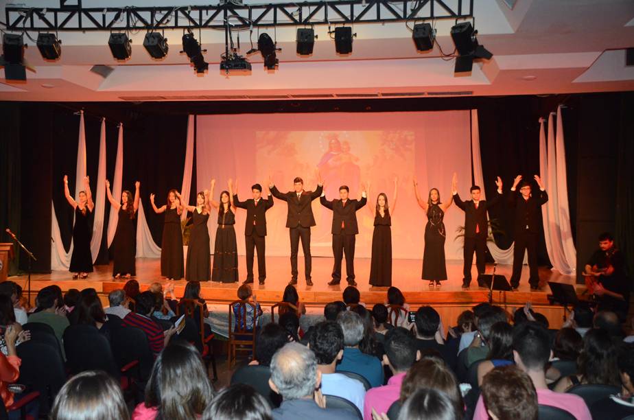 Com o tema "Nossa história em poesia", o Festival de Poesia emocionou a plateia ao reviver os grandes festivais do Auxiliadora. Um espetáculo leve e alegre. Momentos de arte. Poesia, som imagem, música e dança compartilharam o palco da escola com total harmonia. Se recordar é viver, podemos afirmar que vivemos a emoção de ouvir as vozes de ex-alunas que por muitos anos abrilhantaram o nosso palco. Fernanda Correa, na segurança e leveza do seu cantar. Luiza Barros, no encantar das suas palavras. Quanta saudade! Quanta felicidade vê-las mais uma vez em nosso teatro. Nos encantamos com a retrospectiva de cenas de grandes festivais do passado: Jorge Amado, Vinícius de Moraes, Tropicália... Lindas as homenagens aos 90 anos do Auxiliadora e ao bicentenário de nascimento de Dom Bosco. Alternando o palco com essa viagem ao passado, os alunos do Ensino Médio, na noite de 28 de outubro, e os do 6º ao 9º ano, no dia 29, declamaram suas obras, mostrando uma incrível sensibilidade nas 47 poesias apresentadas. Quanta emoção! Quanto talento! Duas noites de muita criatividade e arte.
