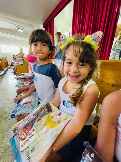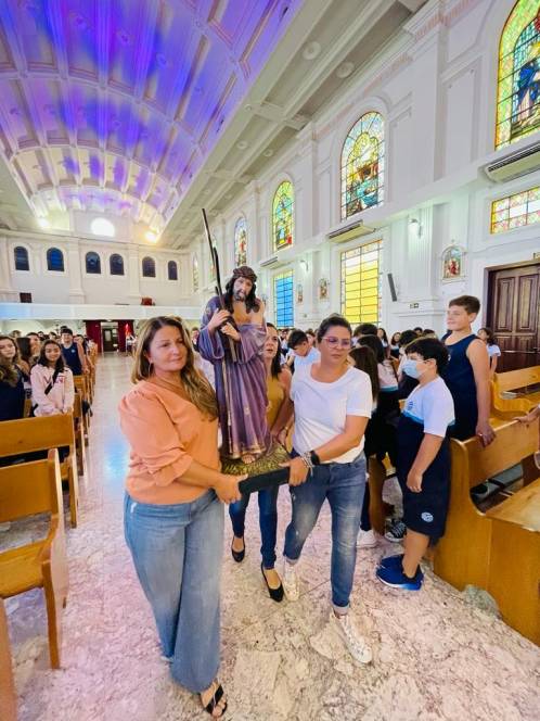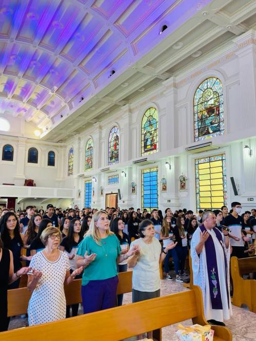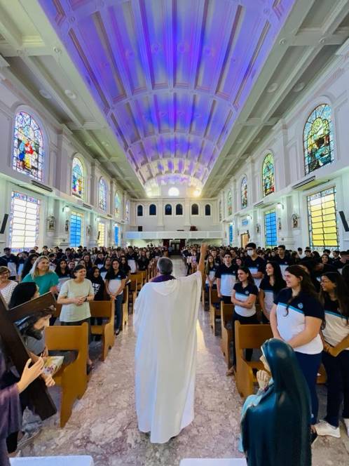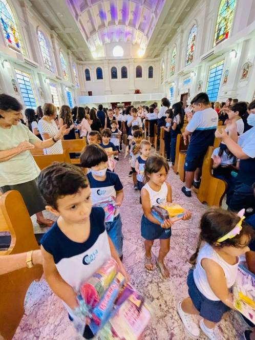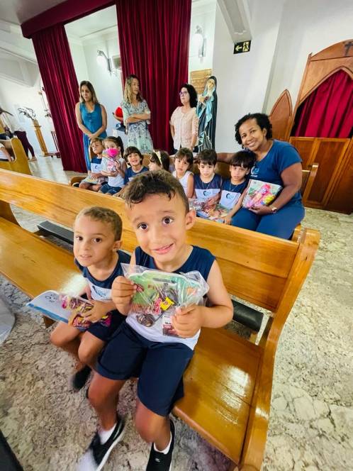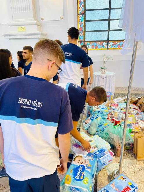 Além dos alunos e professores, o encontro contou com a presença da diretora geral, Ir. Rosa Idalia Pesca, da vice-diretora Beth Landim, e da diretora acadêmica Ir. Luiza Carvalho. Como gesto concreto, foram doados materiais escolares e lanches para os jovens e crianças assistidos pelos Projeto Universidade Bairro- Comunidade Tamarindo, desenvolvido pelo ISECENSA, e fraldas e kits de higiene para uma família que solicitou ajuda. A arrecadação do material envolveu todos os alunos, desde a Escola Infantil até o Ensino Médio, que fizeram questão de participar. "Que possamos nos deixar conduzir pelos olhos amorosos de Jesus que nos transmitem a boa nova da ressurreição!", falou Anna Luísa.