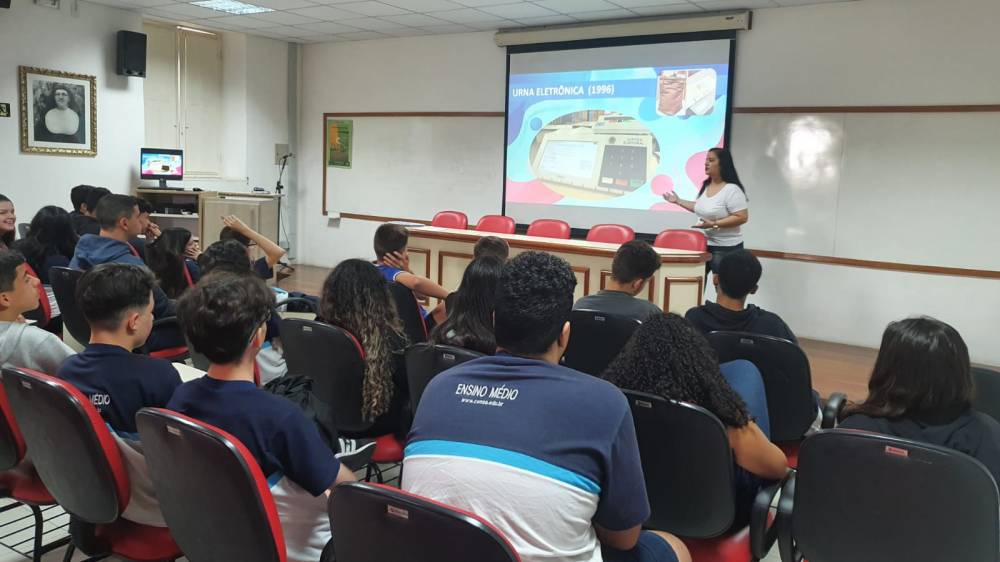 O Ensino Médio do CENSA participou de uma atividade interdisciplinar, na quarta-feira, 21 de setembro. "Cidadania: um projeto em construção" envolveu as disciplinas Projeto de Vida e Ensino Religioso com o objetivo de refletir sobre a construção de uma sociedade democrática, considerando os direitos e deveres do cidadão e da participação ativa de indivíduos de diferentes esferas da sociedade. Foi ressaltada a importância do voto direto e o papel da Justiça Eleitoral na organização, fiscalização e regulamentação do processo eleitoral e o uso da urna eletrônica. "A consciência crítica nasce do conhecimento dos direitos e deveres da sociedade civil para o exercício pleno da cidadania por meio do voto", falou a professora Angela Fonseca.